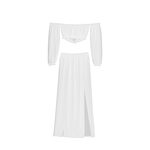 Women's Two-piece Suit Long Sleeve Off Shoulder Tops + Cover Up Skirt for Beach