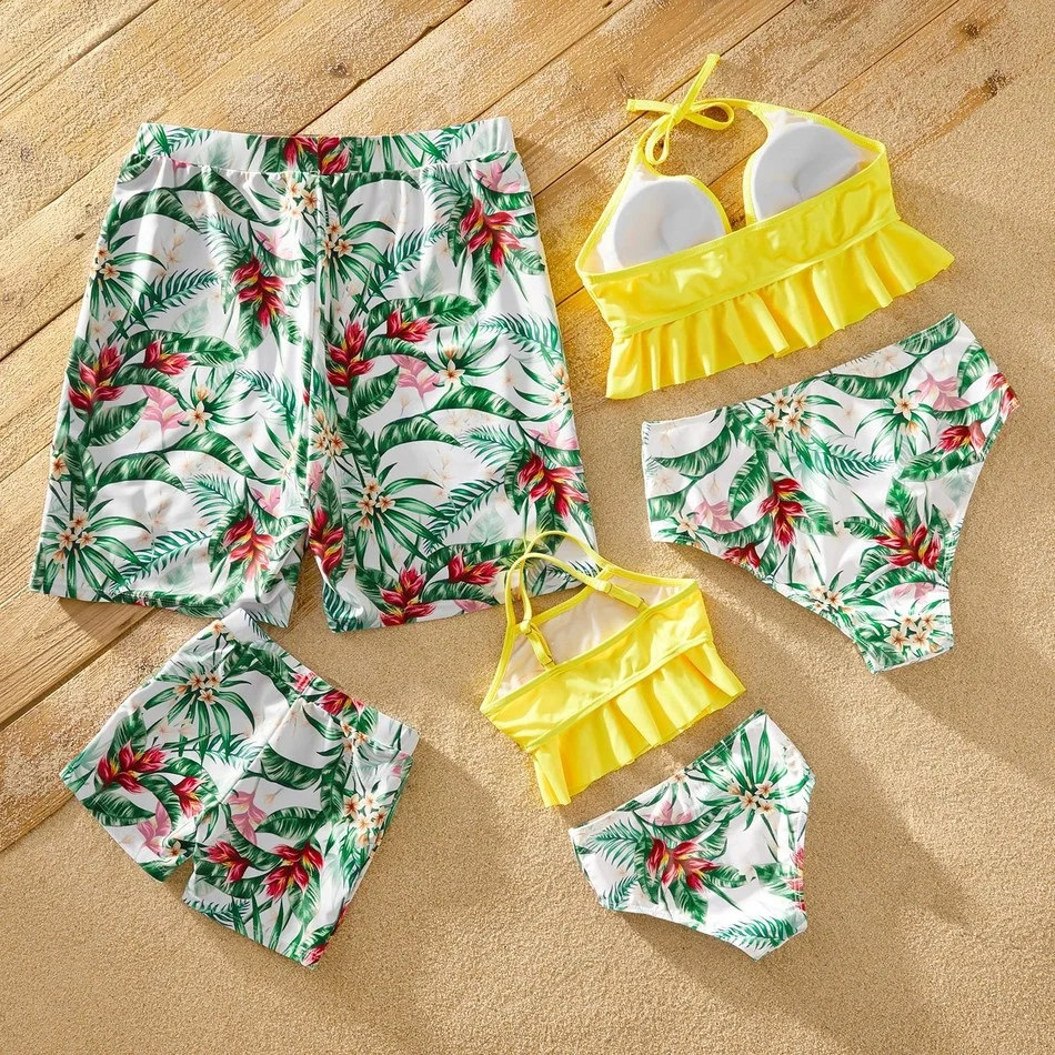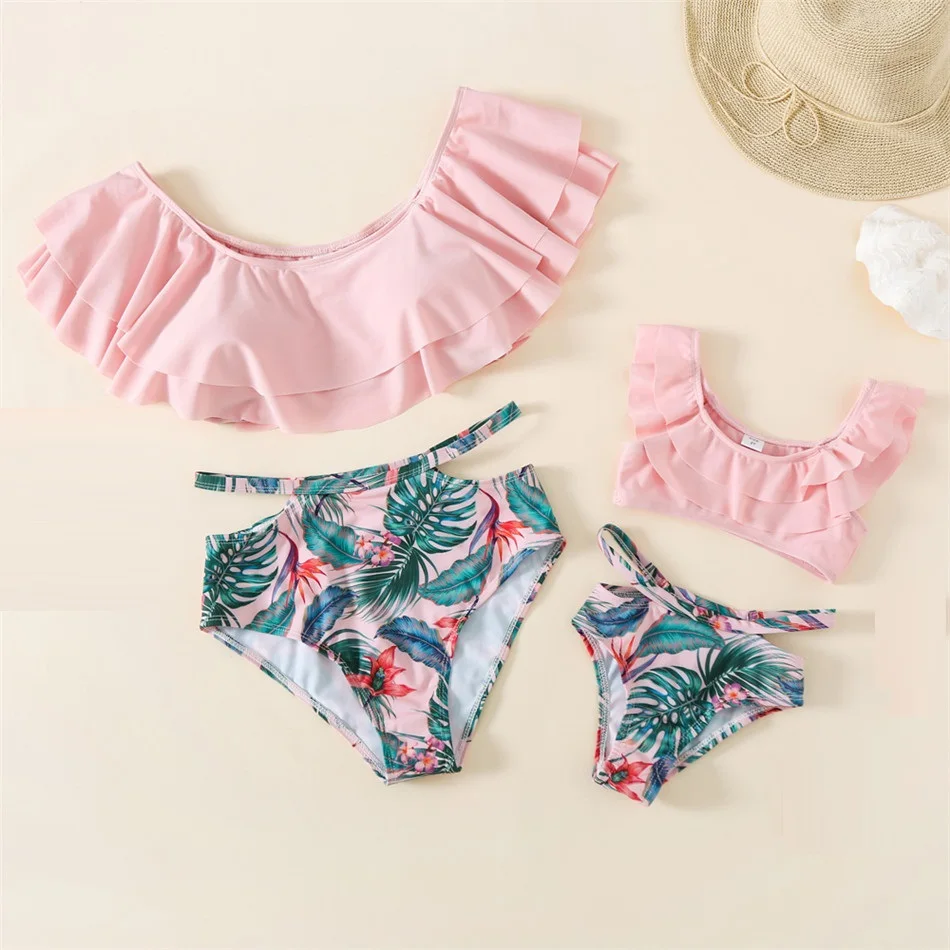 Rejea Flower Mom & Baby Women Girls Bath Suits Dresses Clothes Leaf Mother Daughter Matching Swimwear One-Piece Mommy and Me Swimsuits