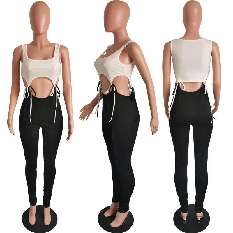 Rejea Hollow Out Patchwork Jumpsuit Rompers Trousers New Sexy Sleeveless Bodycon Jumpsuit Summer Sports Long Pants Jumpsuit