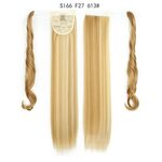 Quick View Choose Options Rejea Long Straight Ponytail Synthetic Hairpiece Wrap on Clip Hair Extensions Ombre Brown Pony Tail Blonde Fack Hair $221.20