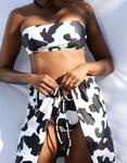Women's Bandeau Bikini Set, Strapless Tube Tops + Bottom + Cover Up Skirt Three Pieces Swimsuit Set