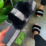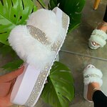 Quick View Choose Options Rejea Women Fur Slippers Rhinestone Wedges Heelplatform Fluffy Soft Furry Slides Outdoor Beach Luxury Sexy Shoes Ladies Female $299.96