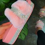 Quick View Choose Options Rejea Sandal Women Rhinestone Furry Slides Kawaii Slippers Faux Fur Flurry Slides Glitter Bling Rainbow Shoes Cute Plush Jelly $296.64