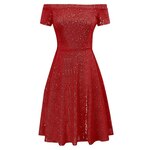 3. Short sleeve, off the shoulder, above knee length, back zipper, shimmer sequin, charming and attractive. A-Line design, shows your curves with charm.