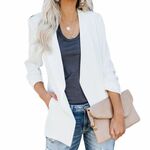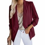 3/4 scrunch sleeves, open front closure, solid color, slim fitted, 2 side pockets, classic style, make you more elegant.