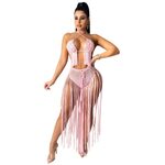 Quick View Choose Options Rejea Sexy Women Hollow Out Tassel Bikinis Cover Ups Summer 2pcs Crop Top Split Skirts Sets Holiday Beach Swimsuit Bathing Suit $276.96
