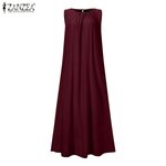 Item Type:Dress Material:100% Rayon Colors:Wine Red,Beige,Black Size:S,M,L,XL,2XL,3XL,4XL,5XL Package include:1 Dress Fit Type:Loose Length:Floor Length Collar:O-Neck Sleeve Style:Regular Sleeve Length:Sleeveless Decoration:Lace-Up Pattern:Solid Thickness:Standard Style:Casual Season:Spring,Summer,Autumn Occasion:Daily
